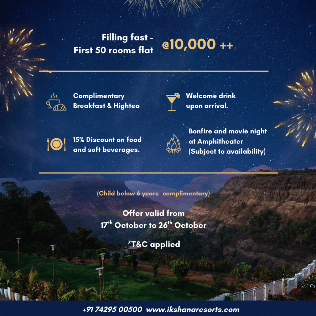 As the festival of lights draws near, escape the city buzz and celebrate Diwali amidst the serene hills of Khandala. Ikshana Resort & Spa invites you to indulge in a festive retreat filled with warmth, joy, and luxury — a true blend of comfort and celebration.